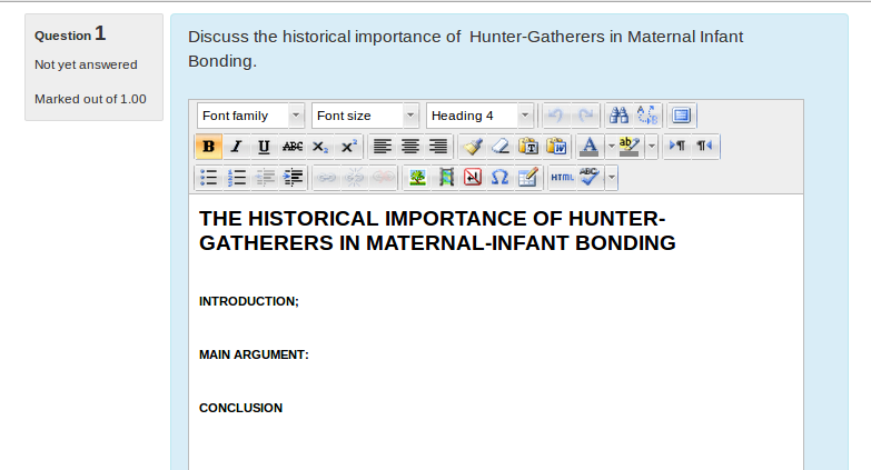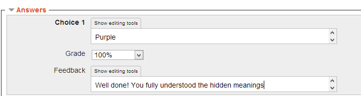When using the Essay question type in a quiz, you can now set a template which appears in the students’ text editor for scaffolding their response: