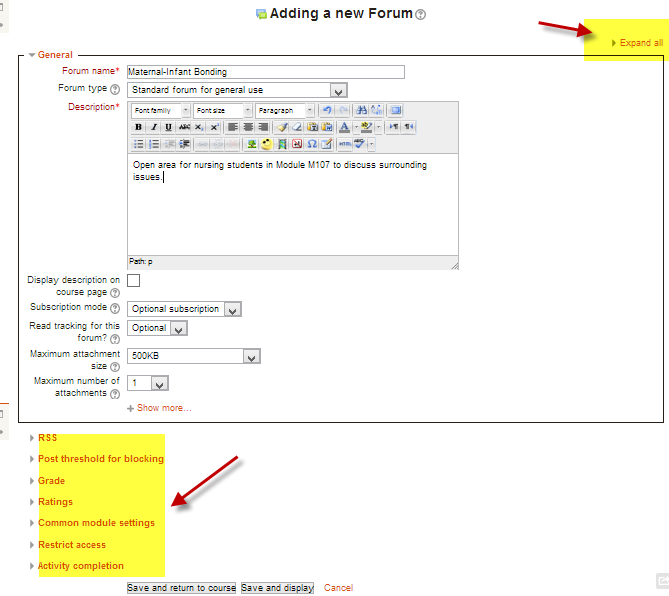 Moodle has a lot of settings and features, which all are displayed in a single page and the page becomes a scroll of death with all these options displayed in a from. New changes makes non-essential or less used settings on forms are collapsed by default, yet you can quickly access them when you need them.