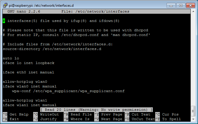 Now that we have the information we need to change the Raspberry Pi configuration from dynamic to static we can start changing the configuration. Before we make any changes, it is wise to make a backup of the file you intend to change