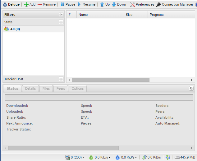 Congratulations, you are now connected to Deluge torrent server using the deluge-web client.